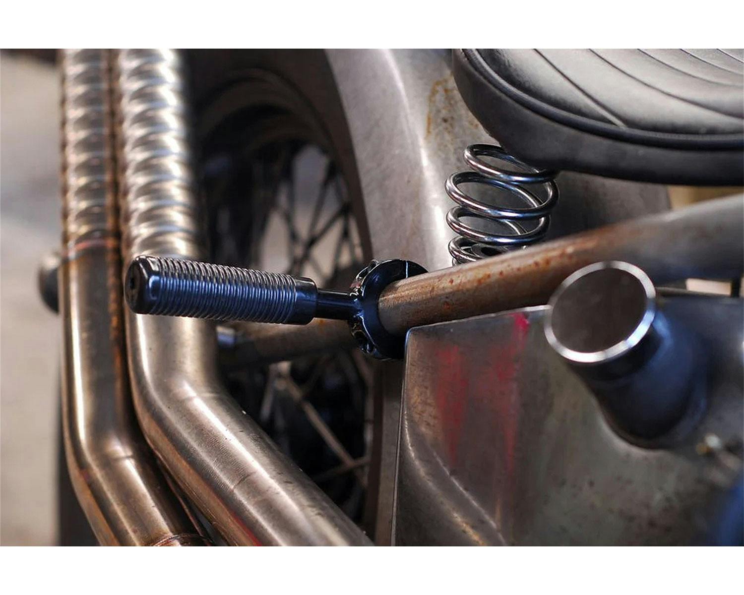 クランプして固定するタイプのフットペグです。 ハイウェイペグやパッセンジャーペグとしてご活用ください。 |