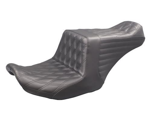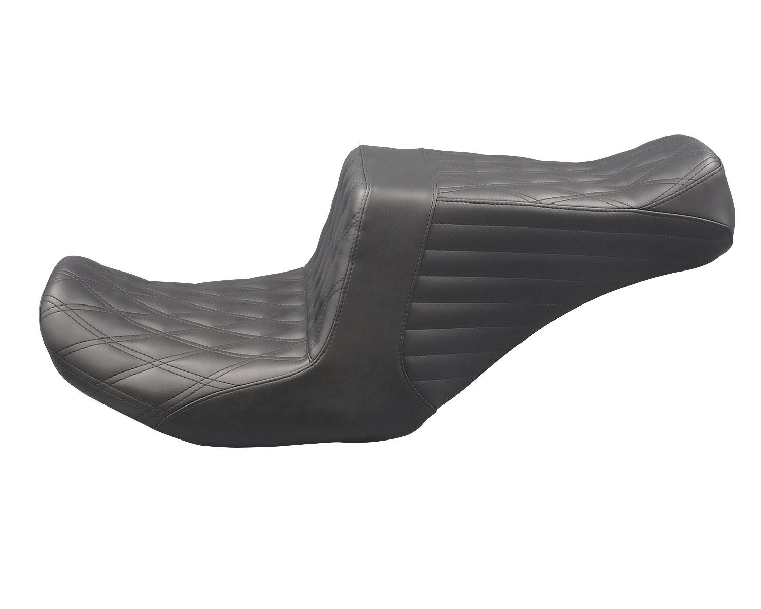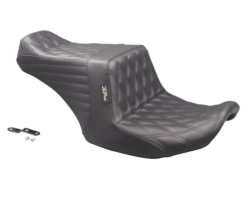 ラペラより新たなデザインシートが登場。その名も『テールウィップ』!! 人気の『キックフリップ』シリーズの派生デザインで、 ライダーとパッセンジャーにとって最も快適なライドとなる事を目指し作られました。 『キックフリップ』の特徴とも言えるライダーのホールド感はそのままに。 タンデム部分はフラットに仕上げ、 尚且つダックテールのような尻上がりの斬新なデザインがパッセンジャーをホールド。 乗り心地抜群のツーリング向けシートとなっております。 また、『テールウィップ』ならではの他に類を見ない唯一無二のデザインは、 車両のカスタム性を格段に向上させます。 アップフロントタイプは後方を盛り上げる事により、 着座する位置が2インチ(約50mm)手前になりますので、 加速時に後ろへズレてしまうのも軽減し、 ハンドルバーやフットコントロールが近くなる事により、 足付きも含めてライディング時の安定感や乗り易さが向上し、 まさに日本人の体格に理想的なシートと言えます。 |