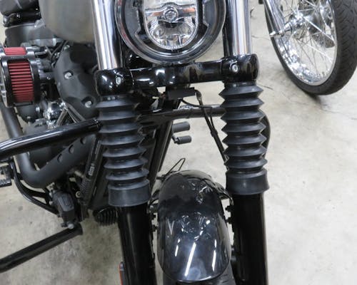レトロなイメージのフォークブーツです。 トラッカー系カスタムやレトロカスタムにぴったりです。 スタンダードサイズに丁度良い長さです。 切込みが無いタイプですので、取り付けはトリプルツリーの分解が必要になります |