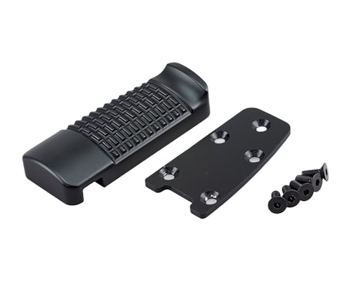 ナイトスターにおけるブレーキ操作時の不満を解消するワイドブレーキペダルカバー 純正のペダル面へ被せて固定する方式なので取り付けも簡単です。 本品装着後はペダル面が上方へ約9mmUp、外側へ約50mmWideとなるため、 操作性が格段に向上いたします。 アルミ削り出しボディーに艶消しのブラックアルマイト仕上げといたしましたので、 純正の雰囲気を損なうことなく装着できます。 |