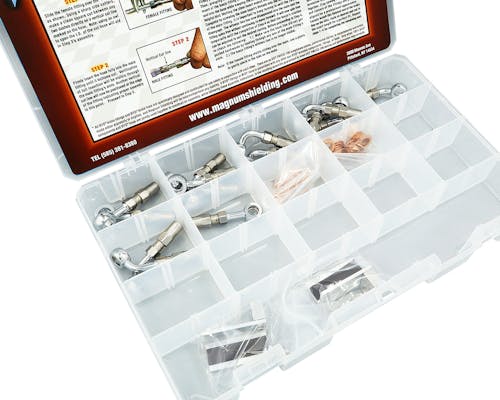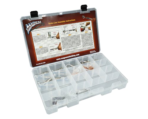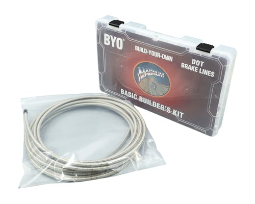 MAGNUMから発売されている革新的シリーズ「BYO(Build-Your-Own)」 その名の通り、"自分で作る"ラインキット! ラインナップも豊富で、スロットル・アイドルケーブルにクラッチ・ブレーキラインまであります。 市販品だと1インチや2インチ刻みでの販売が多い各種ラインですが、 「ちょうど真ん中の長さが欲しかった」 や 「あとちょっと長い・短いと良いのに」 と思ったことありませんか? 自分の車両だけの、理想にあったラインを実現できるのが「MAGNUM BYO」です。 ベーシックビルダーズキットは、 様々な車両に使用できるよう各種フィッティングがセットになったBOXキットです。 キット内商品は別途購入も可能ですので、補充や追加も可能。 突発的な交換が必要となっても、車両に合ったライン構築をその場で再現できちゃいます。 |