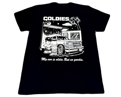“My car is oldie,But so goodie.” GOLDIES SHOPでCAR WASH 綺麗の基本は日常の洗車からです。 FRONT左胸とBACKにプリント ART WORK by ATELIER 036 |