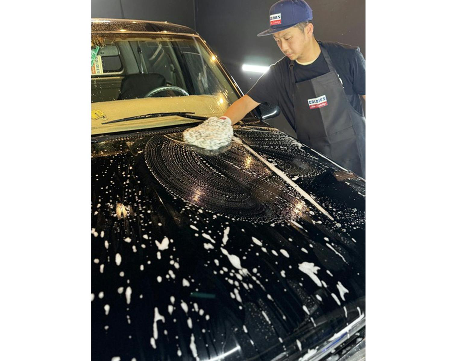 GOLDIES人気のTRICOLORE LOGOをFRONTにPRINT. ボタンや金具が付いていないため愛車に触れるガレージワークにもってこいです。 撥水素材を使用しているため洗車時の着用がオススメです。 フロントに2つポケットが付いているため、タオルや小物を入れられます。 |