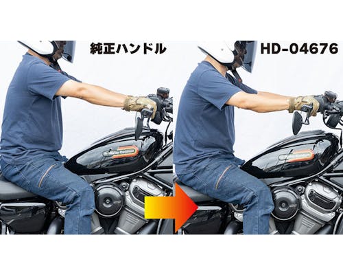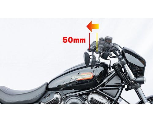 RH975(ナイトスター)の派生モデルとして登場したRH975S(ナイトスタースペシャル)。 既に販売しているRH975用のフィフティーバープラスをRH975Sへ装着する事は可能ですが、 車体寸法が変わってしまうため 車検証の記載変更が必要となってしまう不都合がありました。 そこで、RH975Sへも記載変更を必要とせずの快適なポジションを可能にする フィフティーバーハンドルをラインアップに追加いたしました。 グリップポジションを約50mm手前に移動する事で腕の張りを軽減し 快適なポジションを得る事が出来ます。 純正バーエンドミラー対応 ケーブル類の変更不要(取り回し等の変更が必要になる場合もございます) スイッチの回り止めも加工済の専用設計です。 |