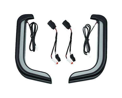 トレーサーシリーズのロアフェアリング用LEDライトです。 フロントエンドのスタイリングと、対向車に対する視認性を大幅に向上させます。 常時灯でホワイト、ウインカー動作時にはアンバーに光ります。 夜の街に映える、kuryakynならではのパーツです。 |