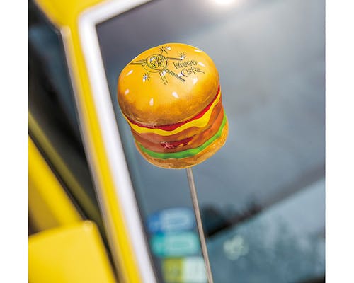 MOON Cafe を代表するハンバーガーが 美味しそうなアンテナ トッパーになって登場。 こんがり焼き色のついたバンズには MOON Cafe ロゴをプリントし、 ケチャップ、マスタード、パティにレタスとかぶりつきたくなるようなアイテム。 弾力のあるスクイーズ タイプのアンテナ トッパーで、 アンテナ トッパー以外にも何かに差して飾ったり、 そのまま置いても車のダッシュボードやお部屋、デスクのアクセントにもなります。 |