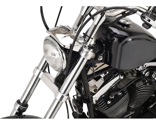 純正フォークが41mmでワイドピッチのソフテイルに、 スポーツスターやダイナの39mmフォークを取り付けする為のブラケットです。 トップブリッジ・ナローハブ・φ39フォークなどは別途用意してくださいね。 |