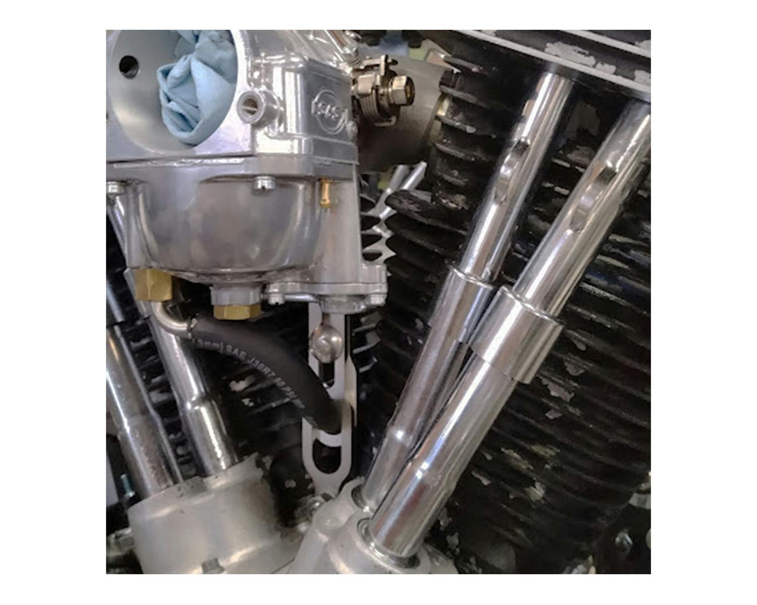 アジャスタブルキャブステーでガソリンホースの逃げ穴がついておりますので、 ホースがシリンダー真ん中で気持ちよくきれいに収まります。 (パーコレーション防止にも一役買います) S&S製品はS&Sキャブ用なので、ケイヒンやベンディックスに使用すると 穴径の違いから気持ちが悪いですが、この製品は3/8→5/16変換カラー付きですので、 穴のガタがなく気持ちよく使用可能でございます。 |