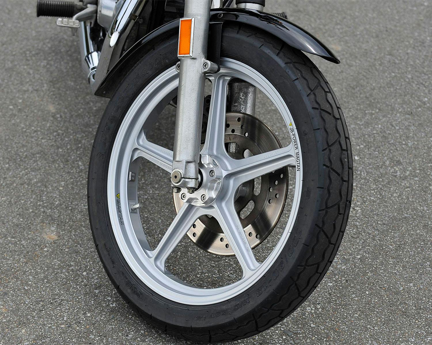 JB-POWER「MAGTAN」 世界初のマグネシウム鍛造という製法で生み出され、“超軽量”、“超高剛性”を実現し 精密かつ高度な削り出し技術により優美なデザインとサイズや形状面での自由度を高めたホイールです。 ホイールの軽量化は昔からレースの世界での課題でした。最初にアルミホイールを装着した車が登場したのは1924年。その後第二次世界大戦以降の1950年代以降になるとアルミに加えてマグネシウムホイールも登場しました。 以降レース界ではマグネシウムホイールが常識化していき高性能のスポーツカーでも次々と採用されていきました。 そんなマグネシウムホイールですがBITO R&Dは1995年から研究を開始し、1999年に世界初の 「市販バイク用マグネシウム鍛造ホイール」の開発に成功しました。その名が示す通りこのホイールは アルミニウムよりもさらに軽い対アルミ比67%という約3分の2の軽さ、そして高強度を誇るマグネシウムの塊を8000tプレスという巨大な油圧プレス機で温間鍛造。 リム部はスピニングにより温間圧延鍛造した後、高性能NC工作機による総削り出しによって仕上げた まさに現存する最先端技術の枠を結集して製造されたホイールなのです。 今ではワークスチームのカワサキやスズキなどで採用され、Moto GPやワールドスーパーバイクといった 世界のモータースポーツシーンでその高性能さが実証されています。 ハーレーの世界でもハイパフォーマンスカスタム、ひいてはレースシーンの盛り上がりなど加熱していく中で文字通り世界の「MAGTAN」をネオファクトリーでもとうとうラインナップ開始しました。 JB-POWER「MAGTAN」がもたらす旋回性能、路面への追従性、制動性、燃費の改善など、あらゆる走行性能の向上は想像をはるかに超えるものがあります。 さらに、耐腐食性、耐衝撃吸収性も、新素材(AZ80)の開発や熱処理技術、防錆技術などと相まって、その性能はより大幅に向上し通常使用域での耐久性は半永久的と評されています。 ”超軽量”、”超高剛性”、”超精密” そして無駄のない優美なデザイン、とまさに同社の信念でもある「時代を超えて語り継がれるモノ作り」 を体現するようなホイールです。 |