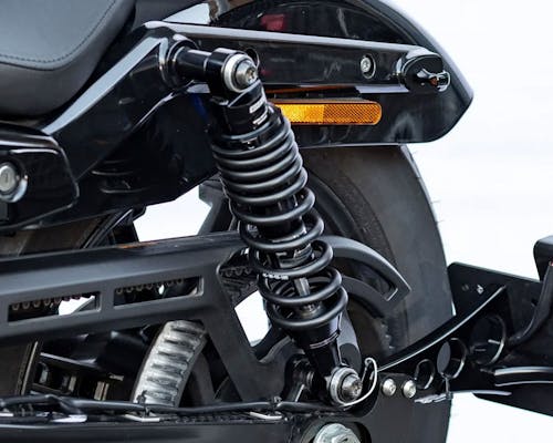 少し背が高いRH975ナイトスターに 11.5インチ、約40mmダウンのリアサスペンションが登場 足つきの良さを求めて、サスペンションの機能を犠牲にしてよいのだろうか? 低く見せることが恰好良いカスタムとしても乗る楽しさを犠牲にして良いのだろうか? そんな考えから生まれ、キジマとYSS社で何度も調整を行い実走テストを繰り返し生まれたサスペンションです。 車体に馴染むブラック仕上げとスプリングは落ち着いたマットブラックを採用することによって 車体が持つ雰囲気を壊さずに、高級感を演出するデザインが際立ちます。 そして足つき性の向上だけでなく、乗り やすさを犠牲にしないバネレートを設定。純正サイドスタンド対応です。 |