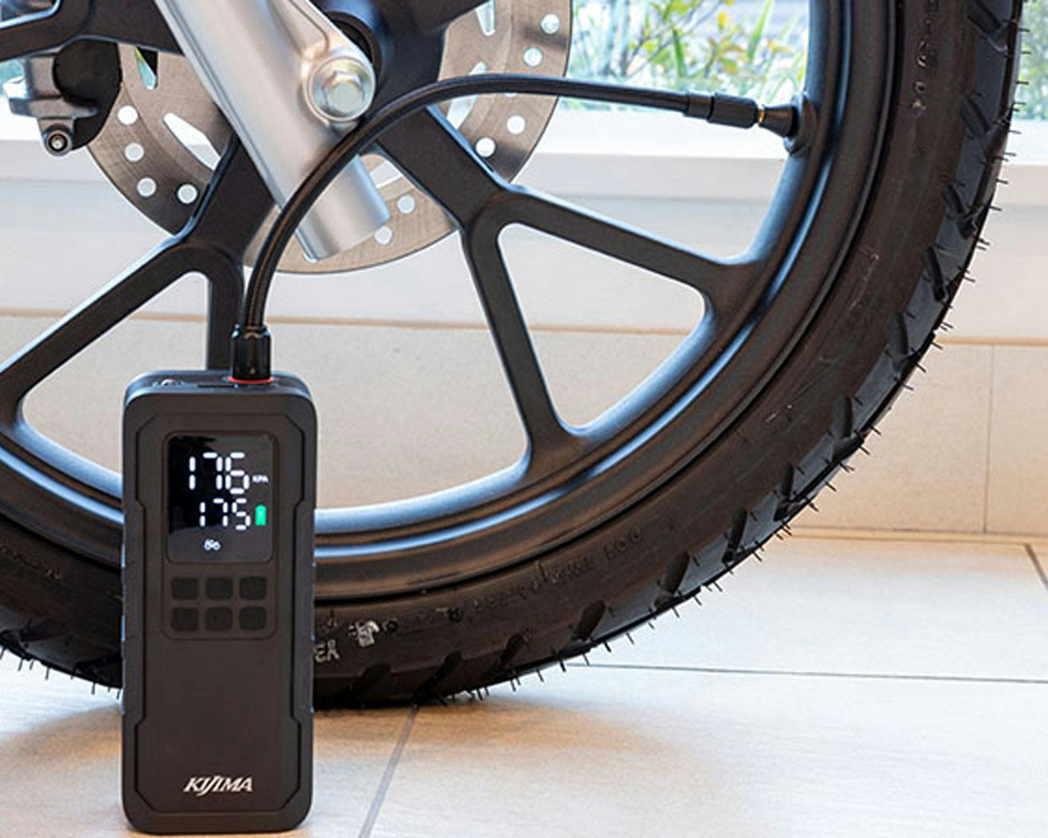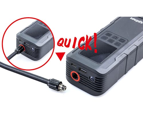 充填速度と使い易さに特化した充電式電動エアポンプです。 従来モデルからポンプ容量の増大による従来比1.3~1.5倍の吐出し量を実現しています。 ホースの着脱にはクイック式を採用し、全長300mmのホースを標準装備しオートバイ/自動車・自転車(英式・仏式)・ボールの4種類のバルブに対応しています。 5種類のモードでそれぞれの空気圧を管理してボタンで切り替え可能です。 圧力の単位を4種類から選択可能でセットするだけで自動換算します。 設定した圧力で停止する安心の自動停止機能付き(空気充填までの時間は種類でことなる) ※連続使用時間や使用環境により誤差が生じる場合がございます LEDライト付きなので夜間でも効率よく作業が可能で、もしもの時に重宝するモバイルバッテリー機能としても使えます。 コンパクトなサイズなので持ち運び可能なのでサイドバッグなどに常備しておきたいですね。 |