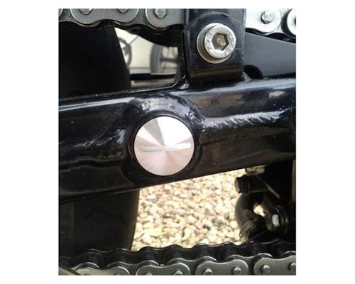 Keyster(岸田精密工業株式会社)別注・製作品 スポーツスターのカスタムでタンデムペグを外した際に、 スイングアームの雌ネジの露出が気になる方へ非常にオススメでございます。 本体形状・寸法につきましては、純正タンデムステップマウント部品に合せた 絶妙な大きさ&なめらかな丸み加減に拘り、 アクセントになり、されど嫌味にはならず!さりげなくお洒落に。 左プライマリーケースドームカバーの丸みにも風情を合せたスタイル・形状となっております。 |