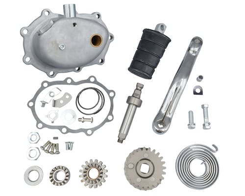 4速トランスミッション用のキックスタートキットです。 やはりキック始動は旧車の醍醐味であり、 もしバッテリーが上がってしまっても安心です。 標準のキック機構にガタが出た場合やキックスタート化にご利用ください。 |