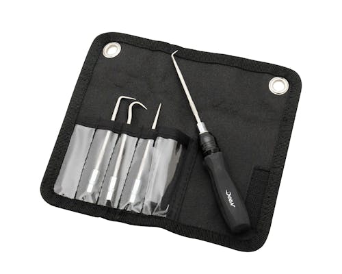 ビットになったメリットは多くありネジ式の弱点だった交換の手間を解消し ワンタッチでビットハンドルからの着脱が可能になりました。 ピックツールは主にこじる用途で使う性質上どうしても消耗が激しくなるので 従来のピックツールですと先端がダメになるたびにハンドルごと買い替えが必要でしたが 先端のビットのみを交換することができるアイテムとなっております。 またピックツールの軸を太くすることにより耐久性がアップし、根本が ローレット加工されているので滑りにくくビットの着脱にも便利です。 ピックツールがビットになったことによりガタつきが不安になる方も多いと思いますが ロック機能を採用し、さらにガタつきを極限まで無くしビットによる差し替え式の弱点を克服しております。 ビットの着脱にもこだわっており、ビットをハンドルの奥まで差し込むだけでロックされ 外す時は黒いホルダー部分を上にスライドすることでロックが解除できます。 もちろん、ピックツールだけでなく、通常のプラスやヘックスのビットにも使用できます。 持ち運びに便利な厚手の布製の専用ポーチも付いているので 先端が鋭利なピックツールを安全に持ち運ぶことができます。 ほこりやゴミの除去、パーツや内装の分解、クリップを外し、コネクタのロック解除などで 活躍しますのでバイク整備においては1セットあると何かと便利です。 【参考動画】 |