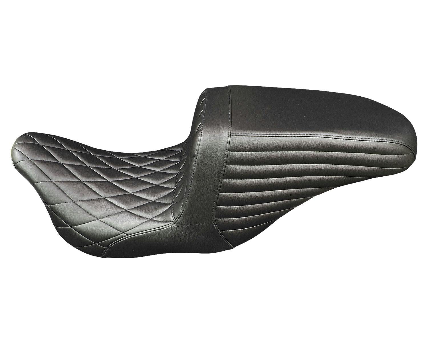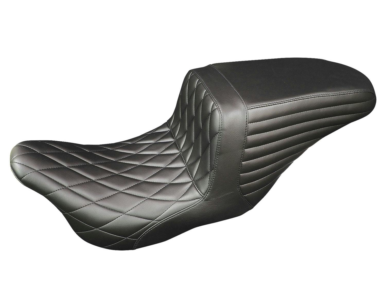 カフェスタイルやフリスコスタイルにぴったりのシートです。 リアのホールド感を残しつつ、フロントをスリムに仕上げてあります。 車種別に設計されているので、車体へのフィット感は抜群です。 見た目に新しいシートで個性を演出! また、アップフロントシートは、後方を盛り上げる事により、 ドライバーエリアが2インチ(約50mm)手前になりますので、 加速時に後ろへズレてしまうのも軽減し、 ハンドルバーやフットコントロールが近くなる事により、 足付きも含めてライディング時の安定感や乗り易さが向上し、 まさに日本人の体格に理想的なシートと言えます。 |