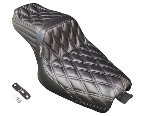 ラペラより新たなデザインシートが登場。その名も『テールウィップ』!! 人気の『キックフリップ』シリーズの派生デザインで、 ライダーとパッセンジャーにとって最も快適なライドとなる事を目指し作られました。 『キックフリップ』の特徴とも言えるライダーのホールド感はそのままに。 タンデム部分はフラットに仕上げ、 尚且つダックテールのような尻上がりの斬新なデザインがパッセンジャーをホールド。 乗り心地抜群のツーリング向けシートとなっております。 また、『テールウィップ』ならではの他に類を見ない唯一無二のデザインは、 車両のカスタム性を格段に向上させます。 MADE IN USA |