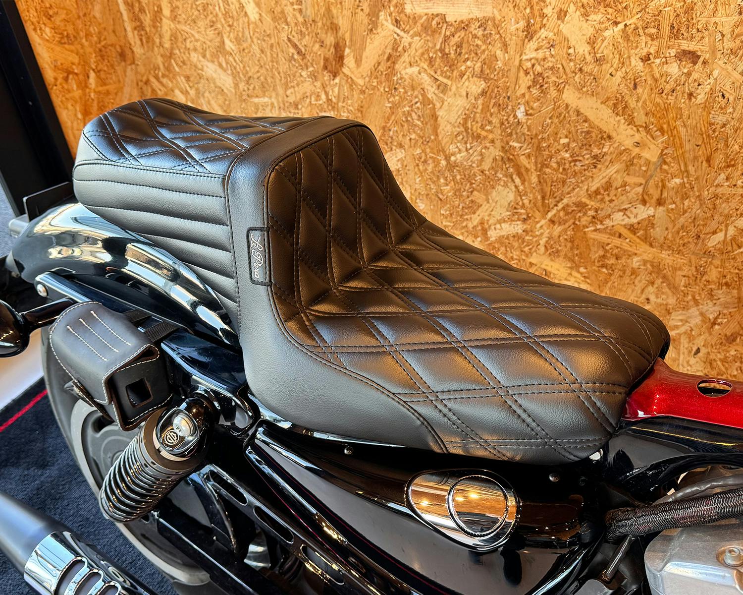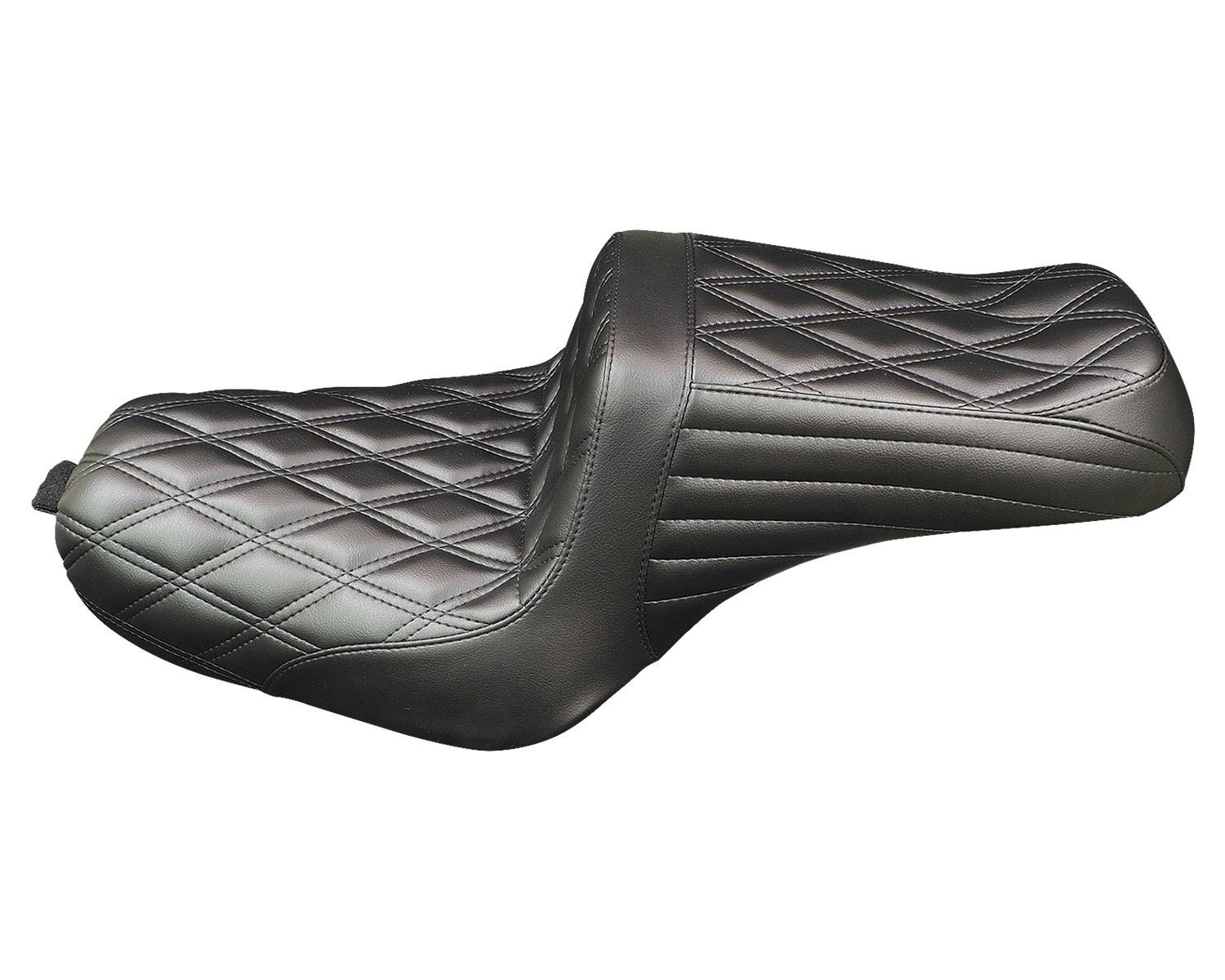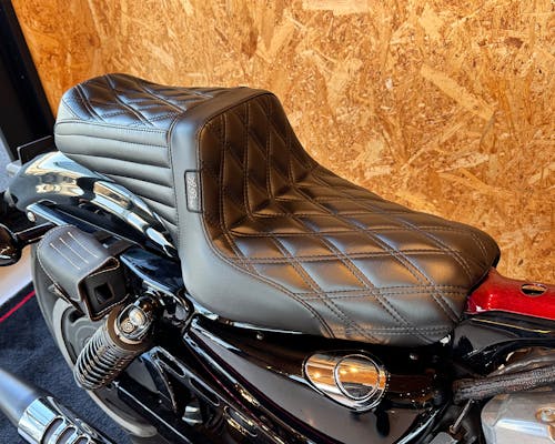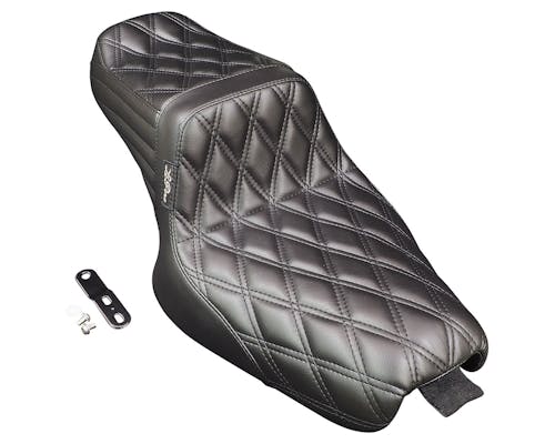 ラペラより新たなデザインシートが登場。その名も『テールウィップ』!! 人気の『キックフリップ』シリーズの派生デザインで、 ライダーとパッセンジャーにとって最も快適なライドとなる事を目指し作られました。 『キックフリップ』の特徴とも言えるライダーのホールド感はそのままに。 タンデム部分はフラットに仕上げ、 尚且つダックテールのような尻上がりの斬新なデザインがパッセンジャーをホールド。 乗り心地抜群のツーリング向けシートとなっております。 また、『テールウィップ』ならではの他に類を見ない唯一無二のデザインは、 車両のカスタム性を格段に向上させます。 MADE IN USA |