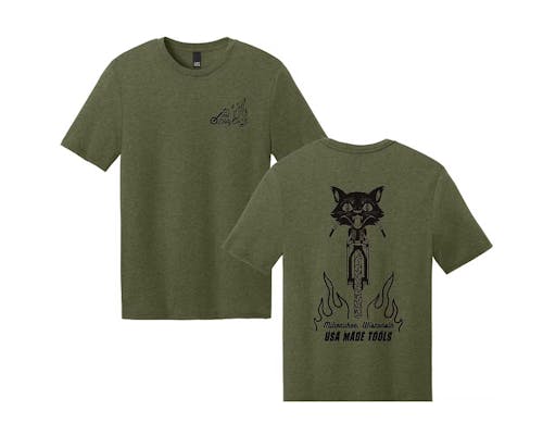 ミルウォーキー発の特殊工具ブランド、Fast EddyのオリジナルTシャツです。 背中にヘルキャットのデザインをあしらい、素材はコットン、ポリエステル、レーヨンの混紡生地で ポリエステル50%、コットン37%、レーヨン13%です。 |