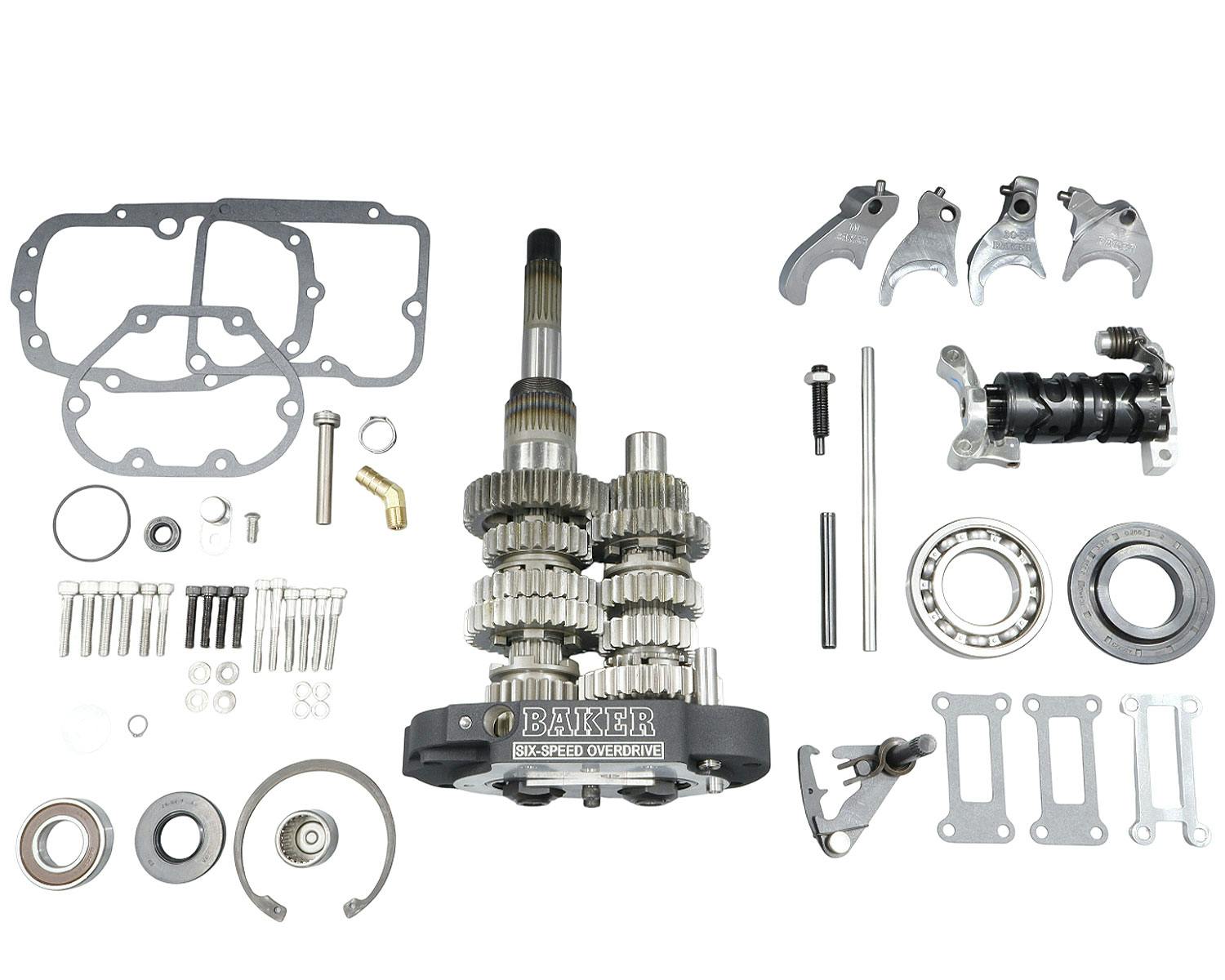 ハーレー用のアフターマーケットパーツでもミッションを専門としたBakerDrivetrain:ベイカードライブトレイン。 高品質で信頼性の高い製品は、V-TWIN業界に留まらず金属加工業界でも高い評価を誇っています。 そんなBakerの純正ミッション用やBakerカスタムミッション用パーツのリリースを開始致しました。 BAKER社の代表的アイテムである6速オーバードライブキットです。 最高品質の材料を用いているだけではなく、 ヘリカルとスパーギアの設計を見直す事で、 静かな動作を実現しています。 高速巡航の快適さをご体感ください。 |