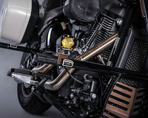 近年カスタムシーンの中心にいるパフォーマンスバガー系のアイテムを 取りそろえるSantoro Fabworx(サントロファブワークス) Santoro Fabworx製のクラッシュバーのライトマウントです。 ビレット加工、キャンディ塗装でドレスアップできます。 |