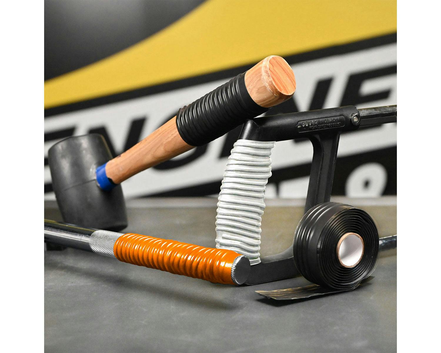 自動車やモーターサイクル用の耐熱ライナーや、 サウンドコントロールライナーで評価の高い、 デザインエンジニアリングによるグリップテープです。 最大限のグリップを発揮するシリコン素材であると共に、 紫外線やオイルの他にケミカル類にも耐える仕様であり、 工具ツールのハンドルに巻くと握り易さと振動の軽減に繋がります。 最大8000ボルトの絶縁により自動車やバイク関連だけでなく、 グリップ力は手すりやノブといった家庭用品にも適しています。 |
