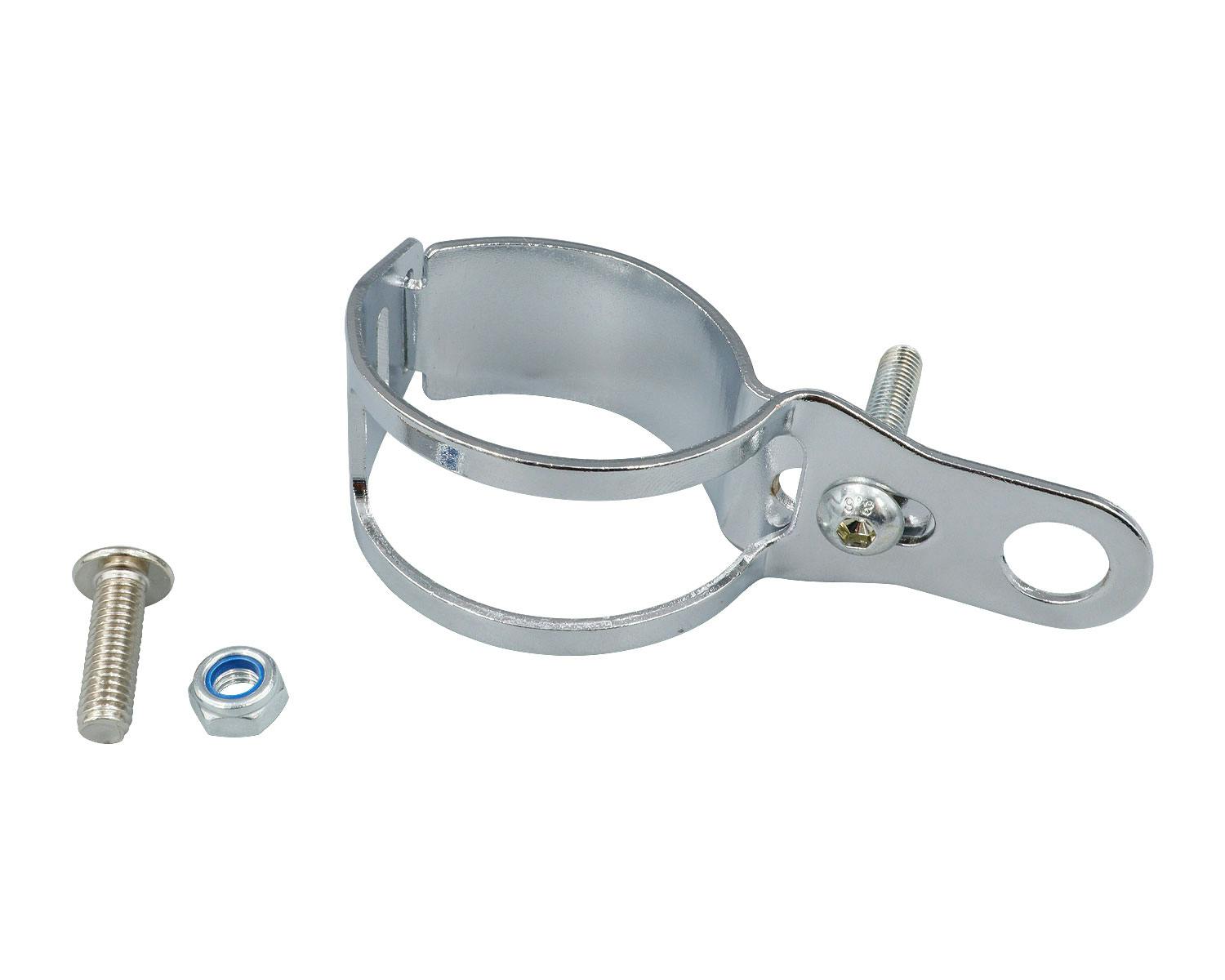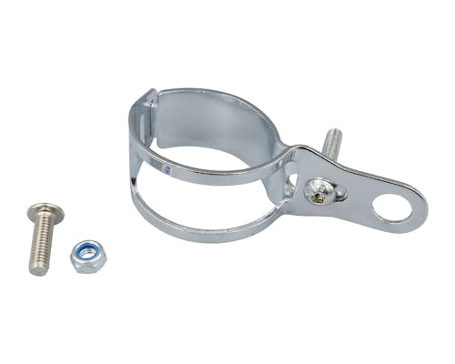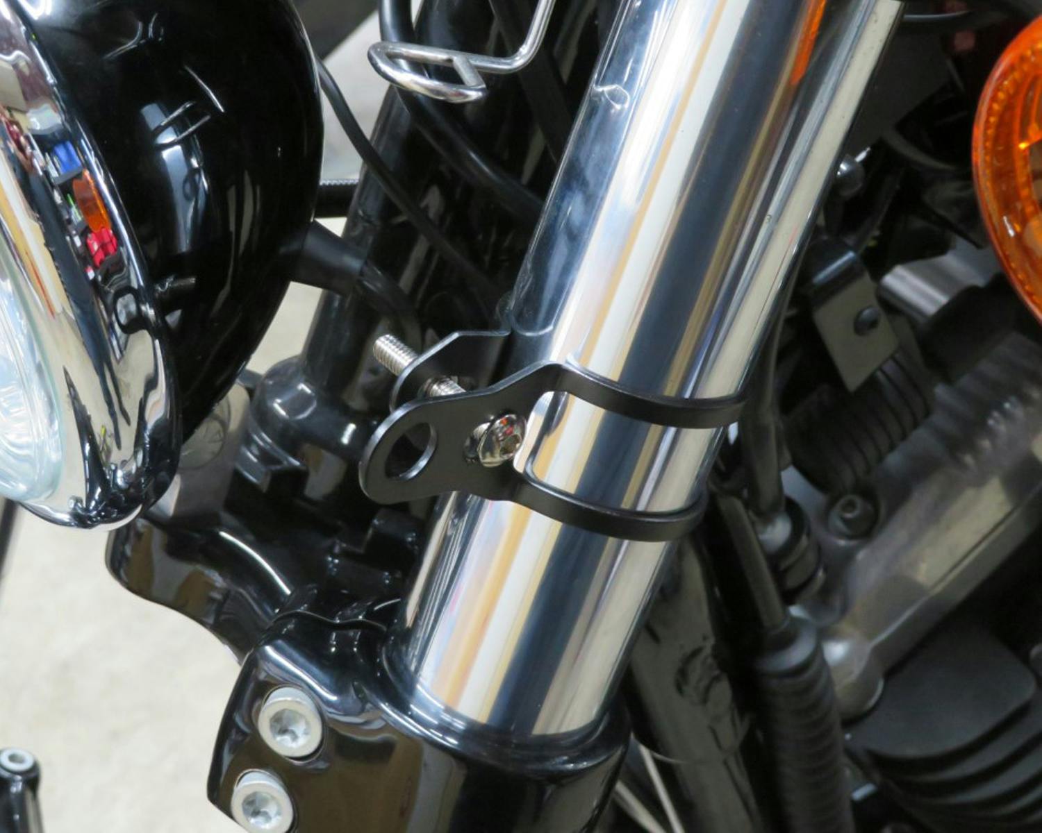 フロントフォークへ挟むタイプのウインカーブラケットです。 アイディア次第ではウインカーに限らず、 ビキニカウルをマウントしたり様々な用途に使う事が出来ます。 |