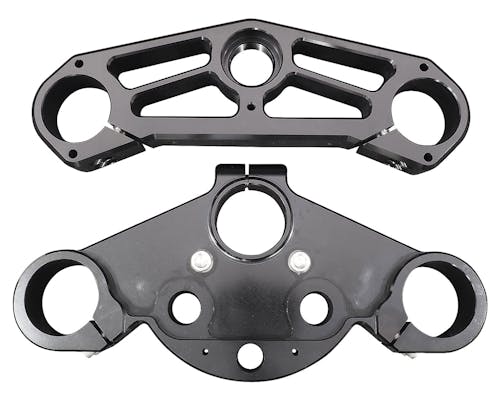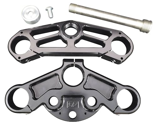 41mmから49mmフォークへ変換するためのトリプルツリーASSYです。 フロントの軽量&剛性アップに加え、 49mmフォークの重厚で迫力あるフロントエンドになります。 CNC加工の削り出しで、美しくもアグレッシブなSLYFOXらしいパフォーマンスパーツ。 ロードグライドに全く新しい見た目をもたらしてくれます。 |