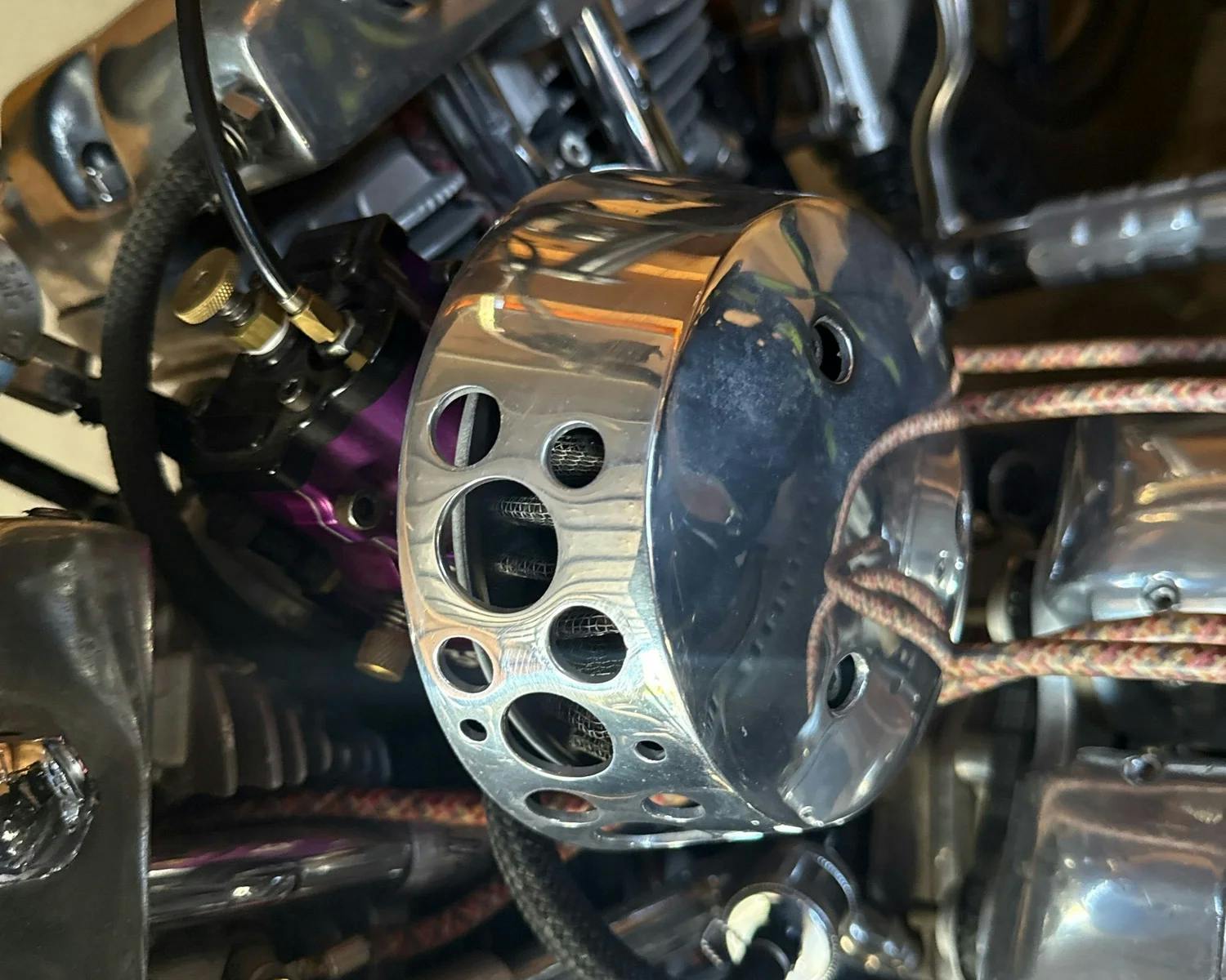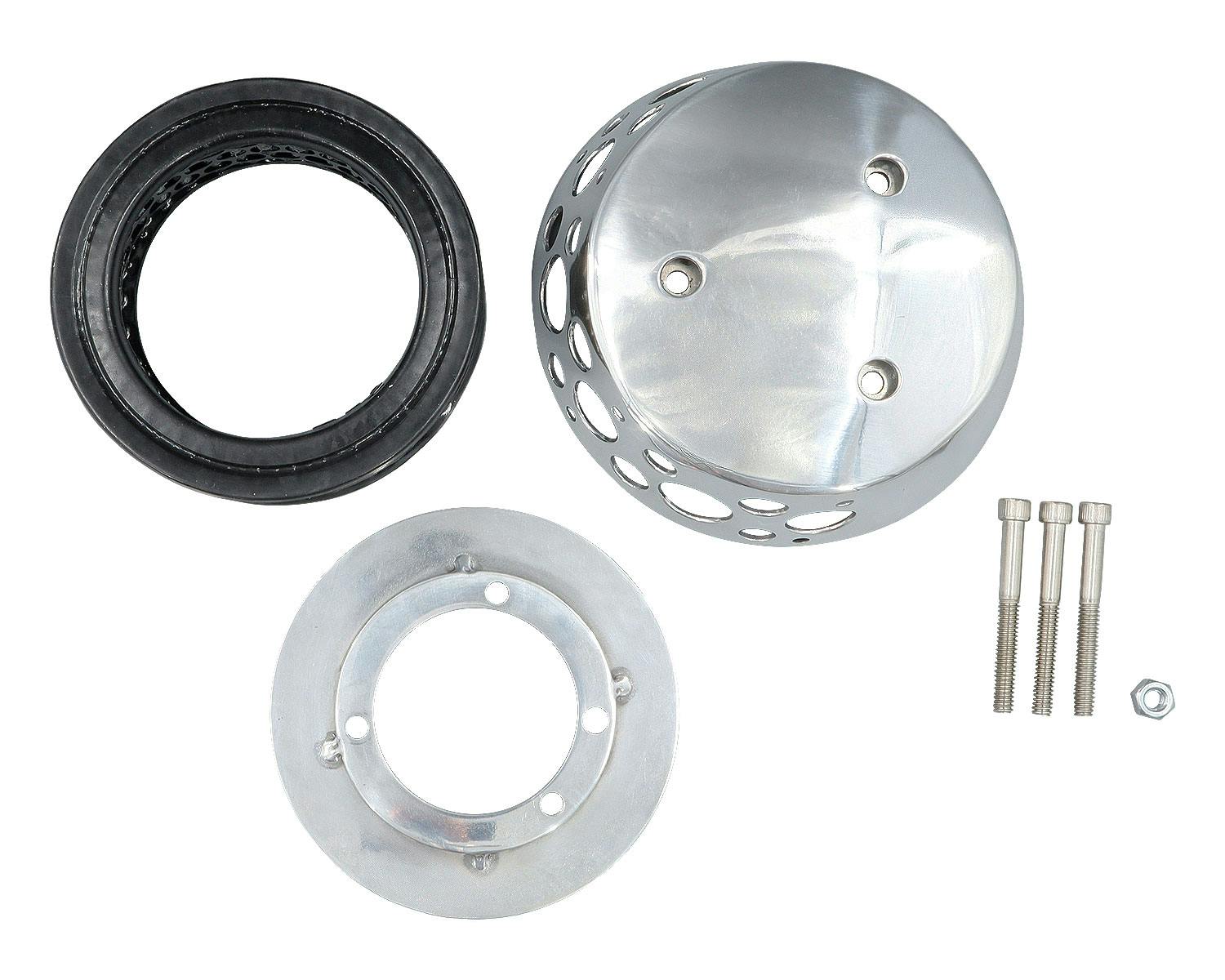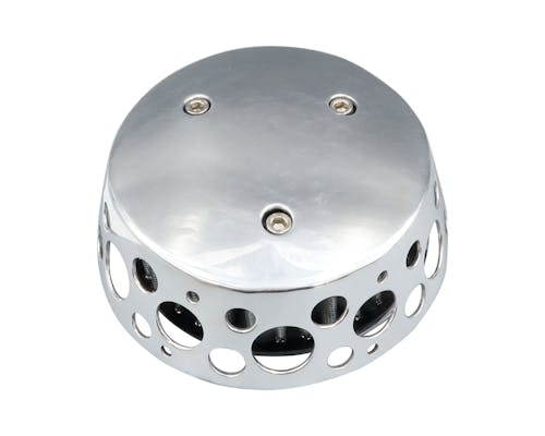 アメリカのBORN FREEをはじめとする、 カスタムショーで話題のFNA Customcycles製エアクリーナーです。 形状を外方向へ窄ませる事で雨の侵入を防いでおり、 一見するとシンプルな佇まいながら、 下側に空いたパンチングホールにより高い吸気効率を実現しています。 |