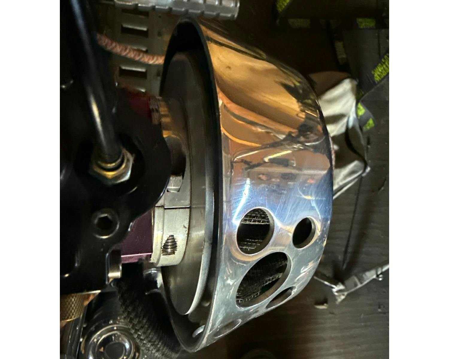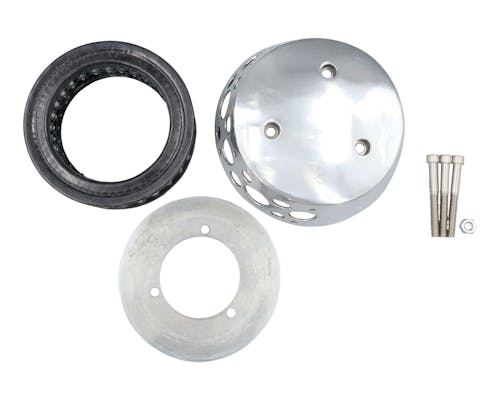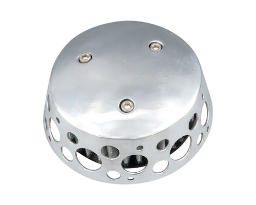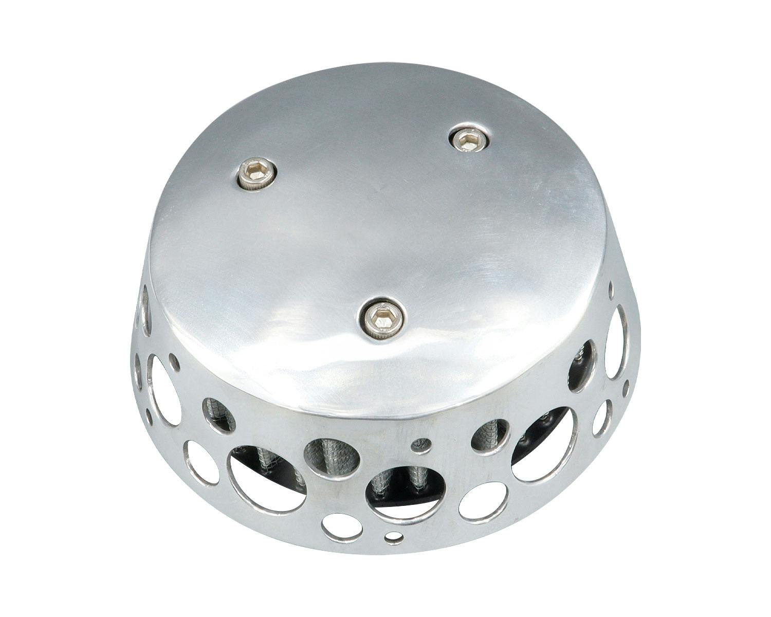 アメリカのBORN FREEをはじめとする、 カスタムショーで話題のFNA Customcycles製エアクリーナーです。 形状を外方向へ窄ませる事で雨の侵入を防いでおり、 一見するとシンプルな佇まいながら、 下側に空いたパンチングホールにより高い吸気効率を実現しています。 |