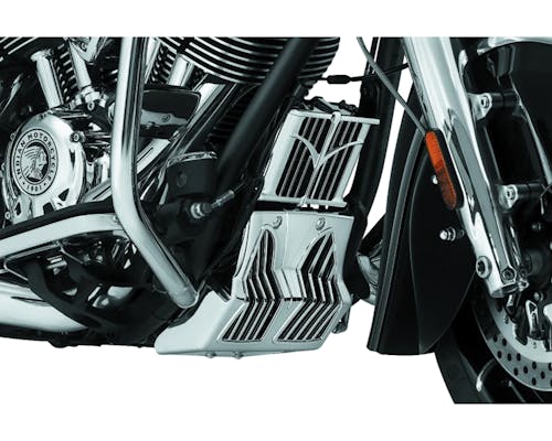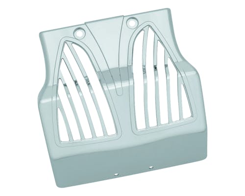 クリアキンがリリースするインディアン用フェアリングカバーです。 オイルフィルターやレギュレーターの配線類を覆って隠す事で、 すっきりとした印象を与えるだけでなく、 空気の流れも考えられたグリルデザインにより造形美も演出します。 |