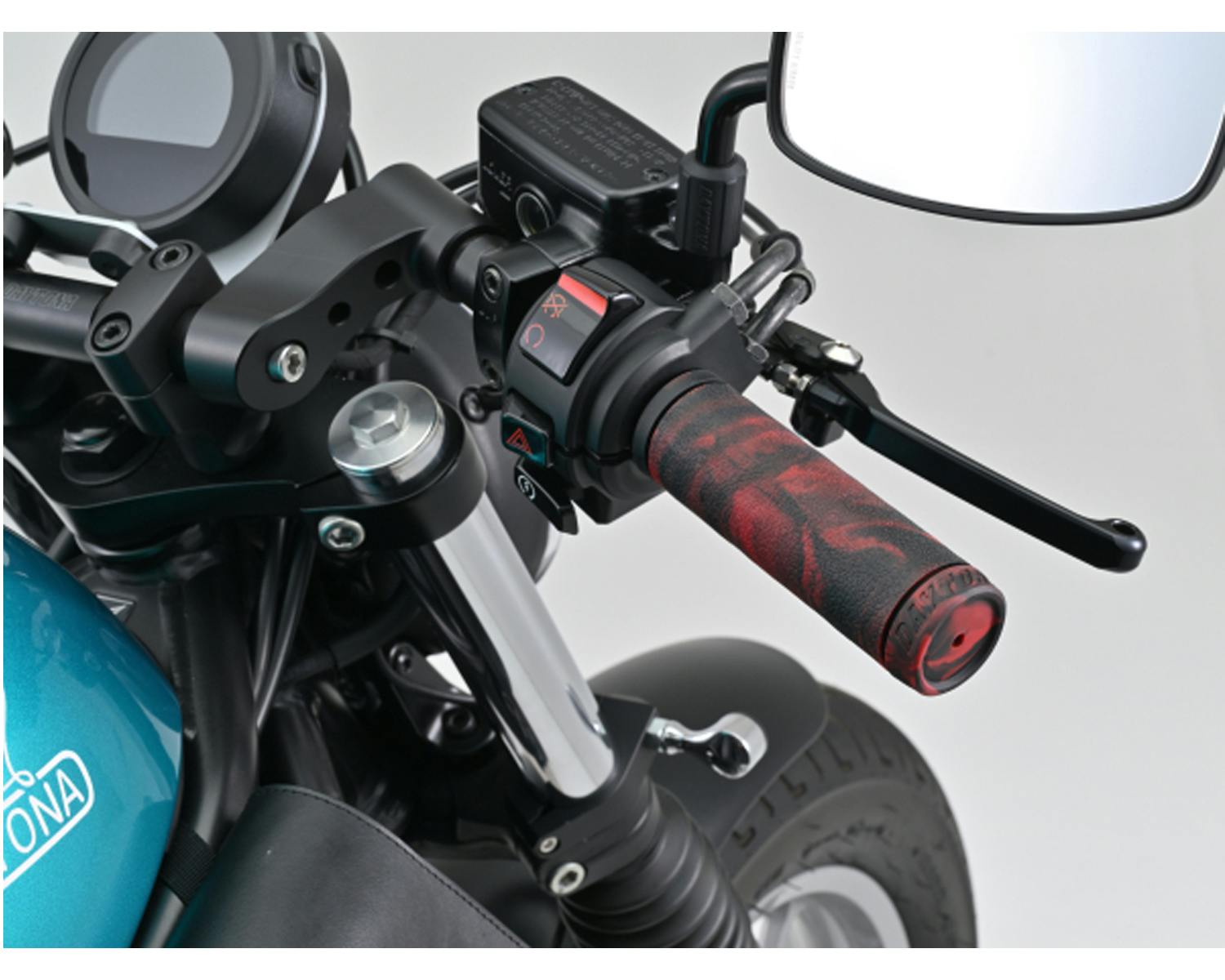 世界にひとつだけのマーブルパターン! インチバーハンドル車に最適のカスタムグリップです。マーブル調の模様は、1本ずつ全て異なります。 表面パターンと素材の組み合わせで滑りにくく疲れにくいデイトナオリジナルグリップです。 長時間のライディングでも疲れにくく、個体差を楽しむ世界に一つのマーブル模様で快適性とデザインの両立をしています。 |