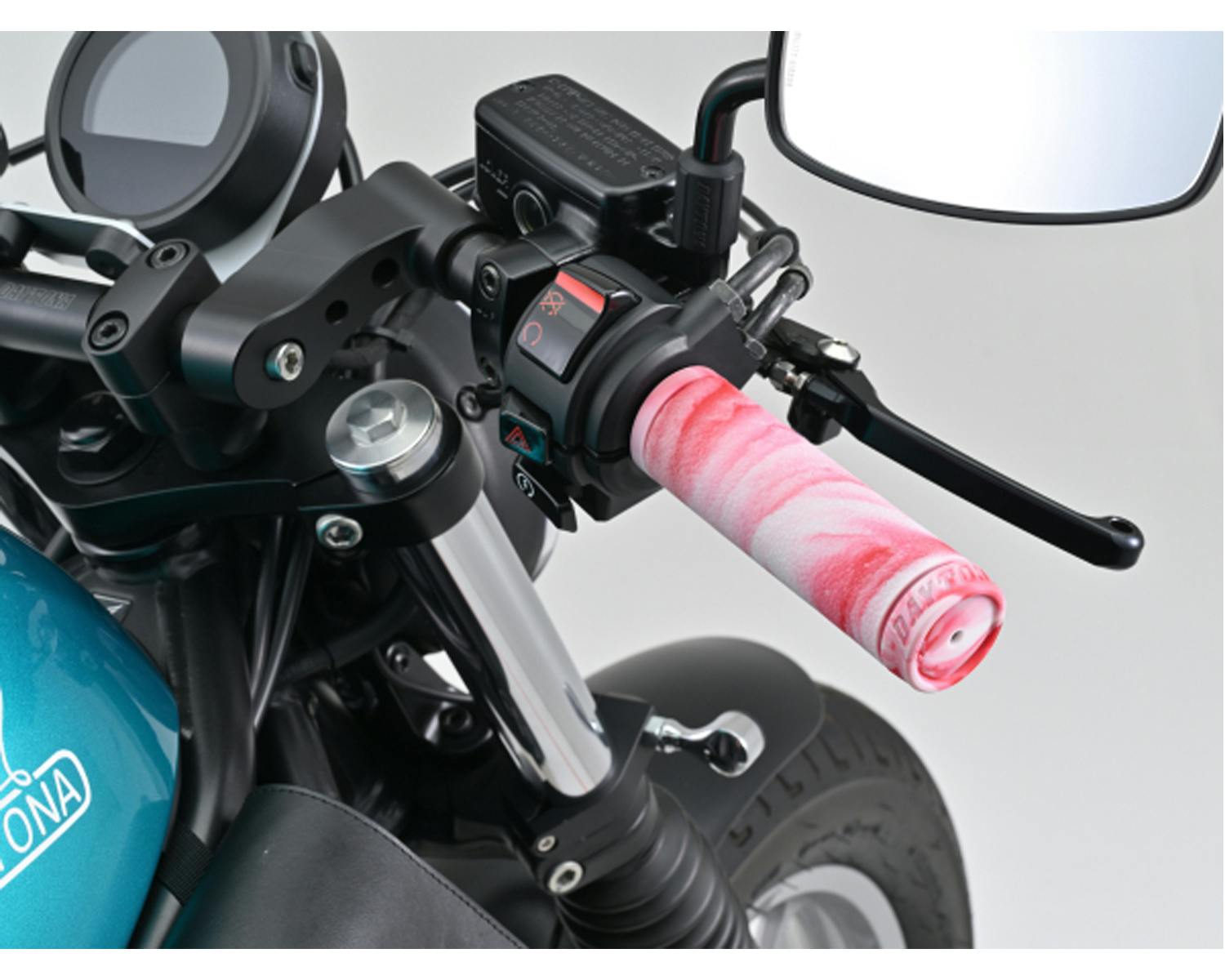 世界にひとつだけのマーブルパターン! インチバーハンドル車に最適のカスタムグリップです。マーブル調の模様は、1本ずつ全て異なります。 表面パターンと素材の組み合わせで滑りにくく疲れにくいデイトナオリジナルグリップです。 長時間のライディングでも疲れにくく、個体差を楽しむ世界に一つのマーブル模様で快適性とデザインの両立をしています。 |