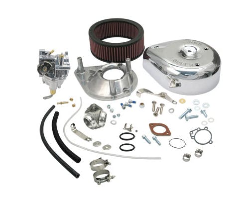 ハイパフォーマンスキャブとして有名なS&S、スーパーEキャブレターです。 その強烈で独特な加速感は病み付きになること間違いなし! またエアクリーナーの形状も人気が高く、CVキャブにもこのエアクリーナーを 付ける人がいるほどです。 |