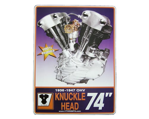 ナックルヘッドエンジンが大きく描かれたパネルです。 ガレージや自室、ショップのインテリアに最適です。 パネルの端に小さな穴が開いているので、鋲などで固定してください。 |