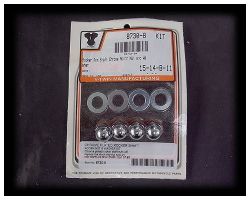 Colony製のロッカーシャフトのアコーンナットセットです。 ロッカーカバーの「目玉」と呼ばれる部分ですね。 キレイにしておくと気持ちの良い場所です。 交換用にいかがでしょうか。 |