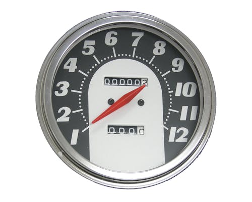 レトロな雰囲気のスピードメーターです。 マイル表示なので一瞬戸惑うかもしれませんが、 本国仕様の雰囲気を味わうならこちらがオススメ! |