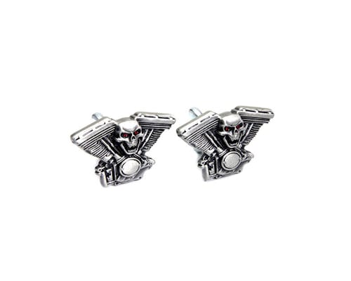 迫力あるスカルとV型エンジンモチーフの ナンバープレート(ライセンスプレート)固定用スクリューです。 さりげないパーツですが、意外と目立ちますよ! |