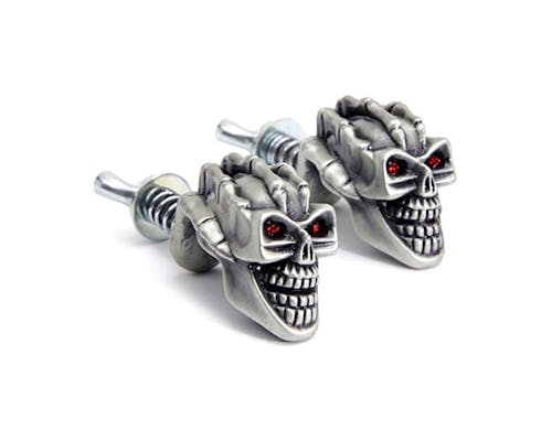 迫力あるスカルモチーフの ナンバープレート(ライセンスプレート)固定用スクリューです。 さりげないパーツですが、意外と目立ちますよ! |